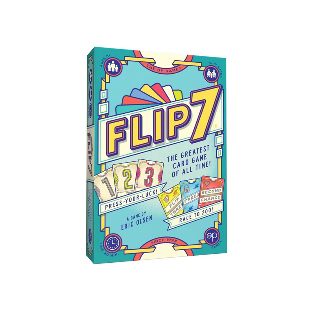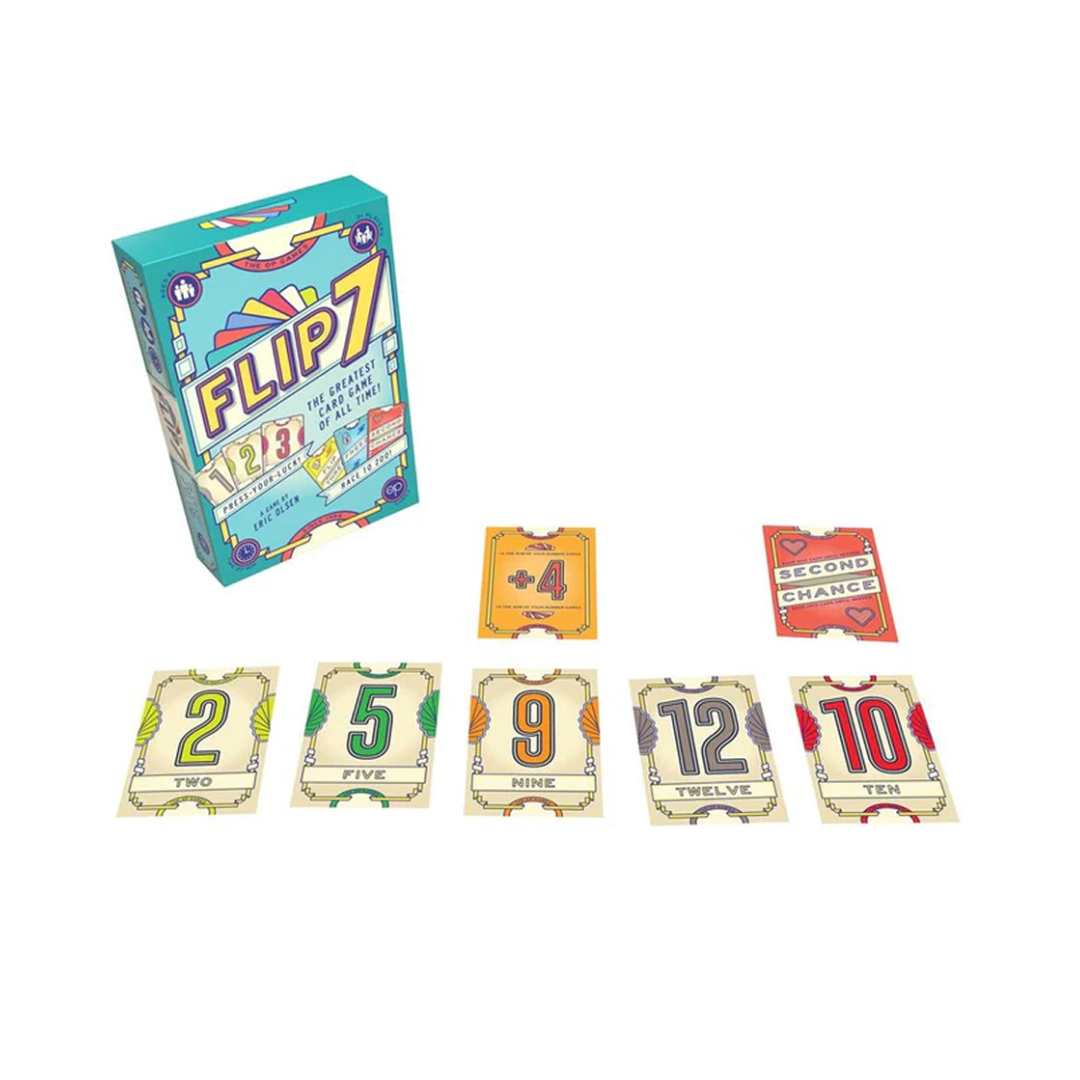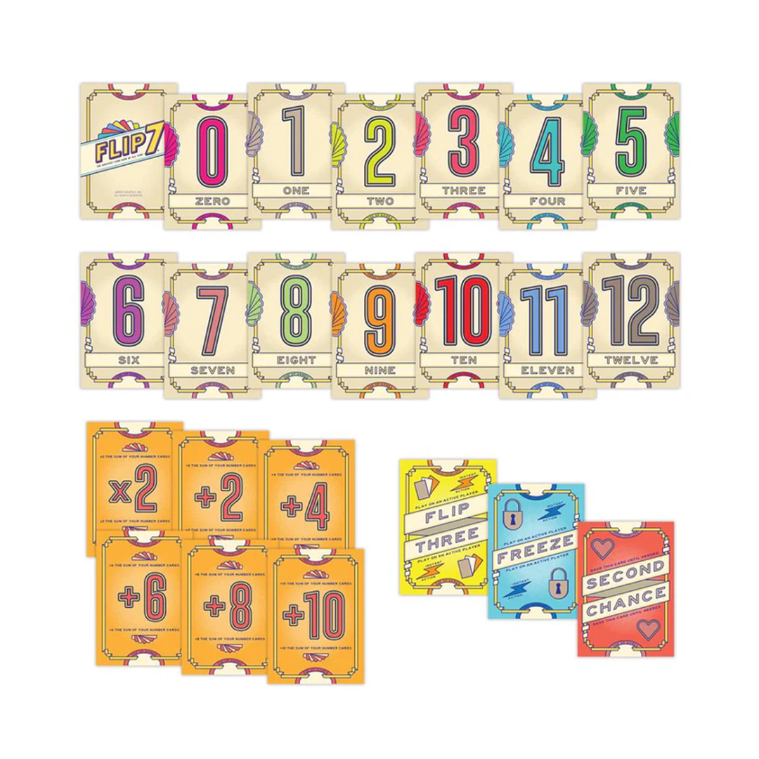 Flip 7 er et tempofyldt kortspil, hvor held og strategi mødes i et nervepirrende spil om at presse grænsen. Vend kort ét ad gangen – men pas på ikke at ramme det samme tal to gange. Kortene er unikt opbygget med én 1’er, to 2’ere, tre 3’ere og så videre, hvilket gør hvert valg ekstra afgørende.