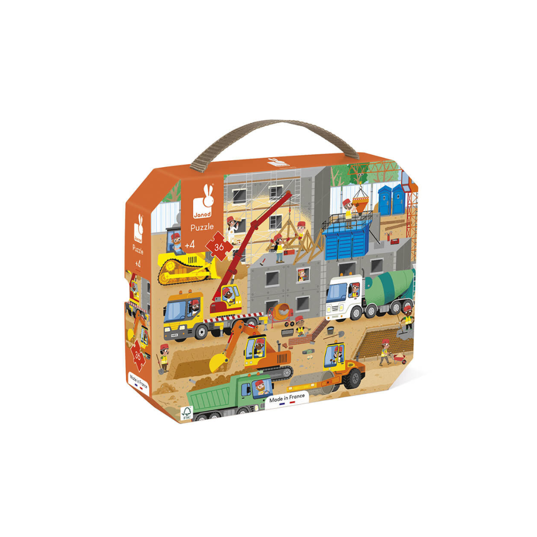 Gør klar til en ny dag på byggepladsen! Perfekt til små byggere og børn, der elsker maskiner. Puslespillet består af 36 brikker, hvilket gør det ideelt til børn fra ca. 4 år, hvor det både er underholdende og passende udfordrende.