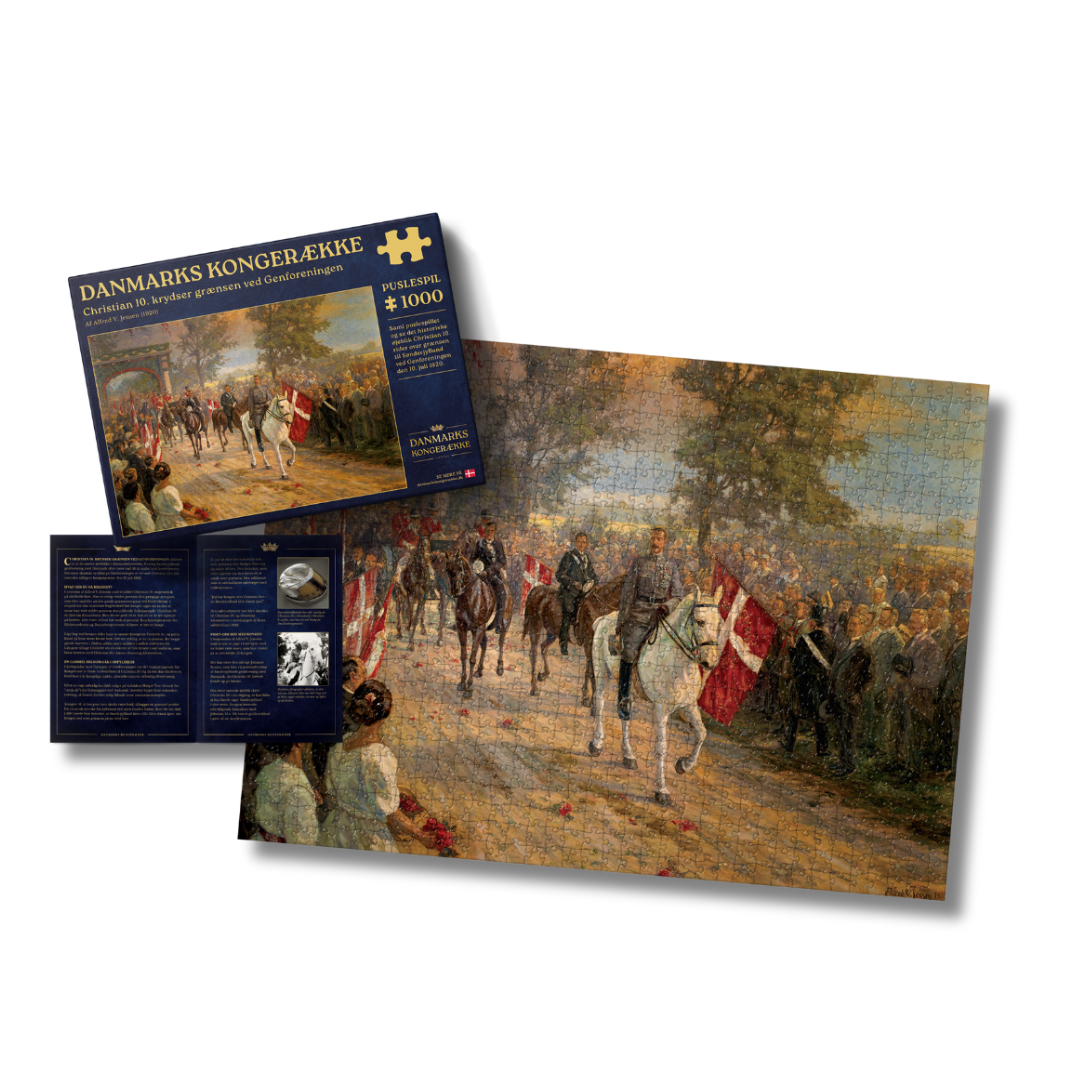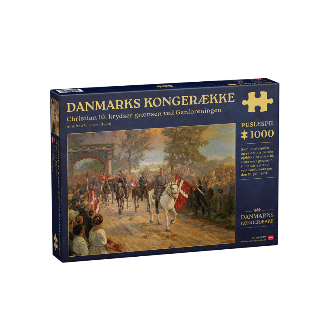 Oplev et af de mest bevægende øjeblikke i danmarkshistorien med dette stemningsfulde puslespil baseret på Alfred V. Jensens historiske maleri. Motivet indfanger øjeblikket, hvor Christian 10. rider ind i Sønderjylland den 10. juli 1920 og markerer Genforeningen efter 56 år under tysk herredømme.