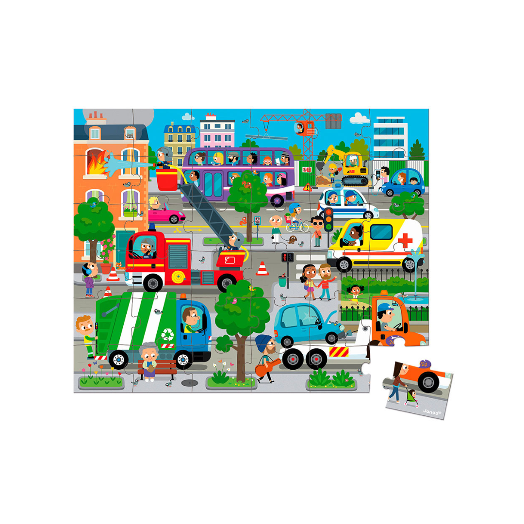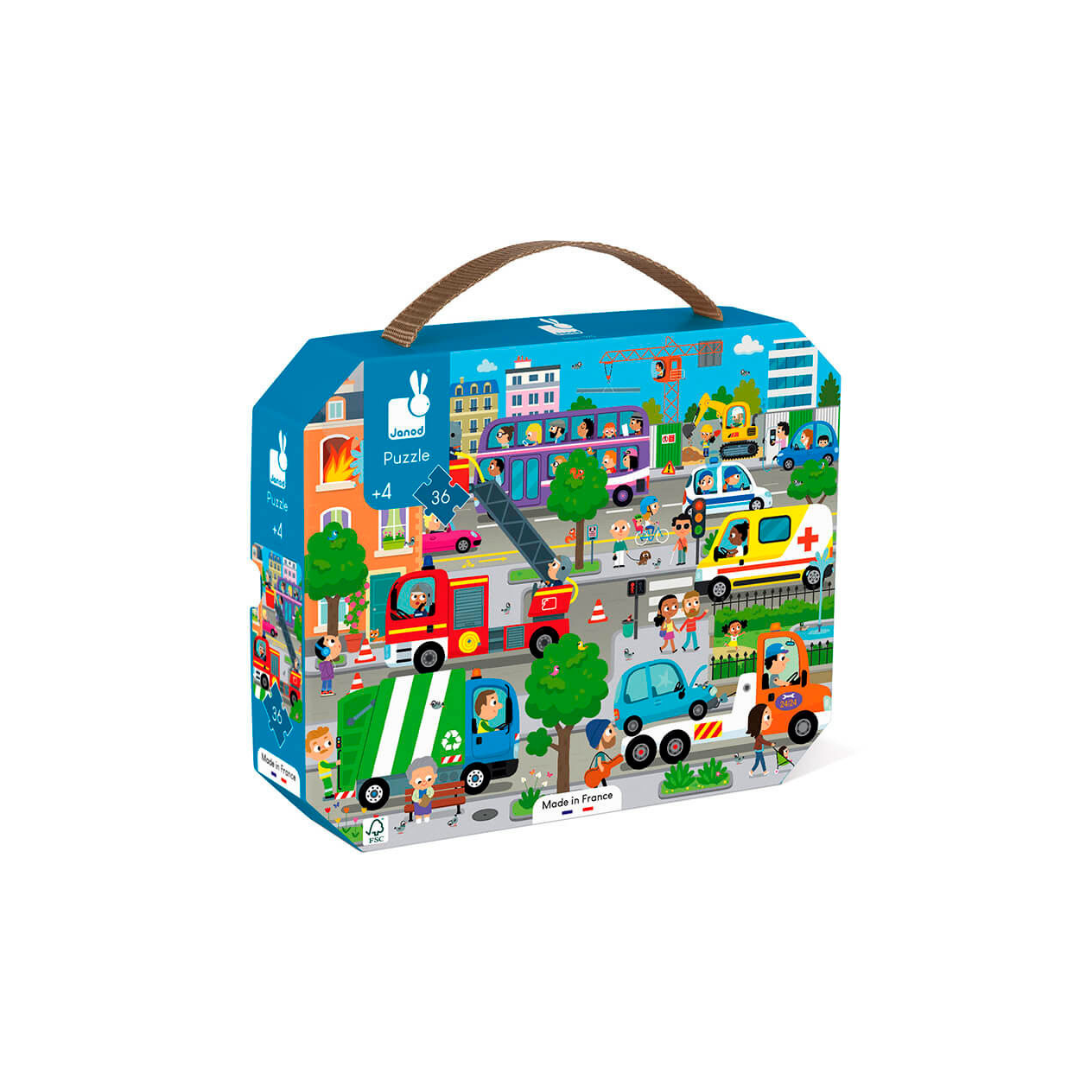 Tag med på en sjov tur gennem byen med Janod puslespil til børn med storbyen – et farverigt puslespil med masser af spændende detaljer, som børn kan gå på opdagelse i igen og igen.