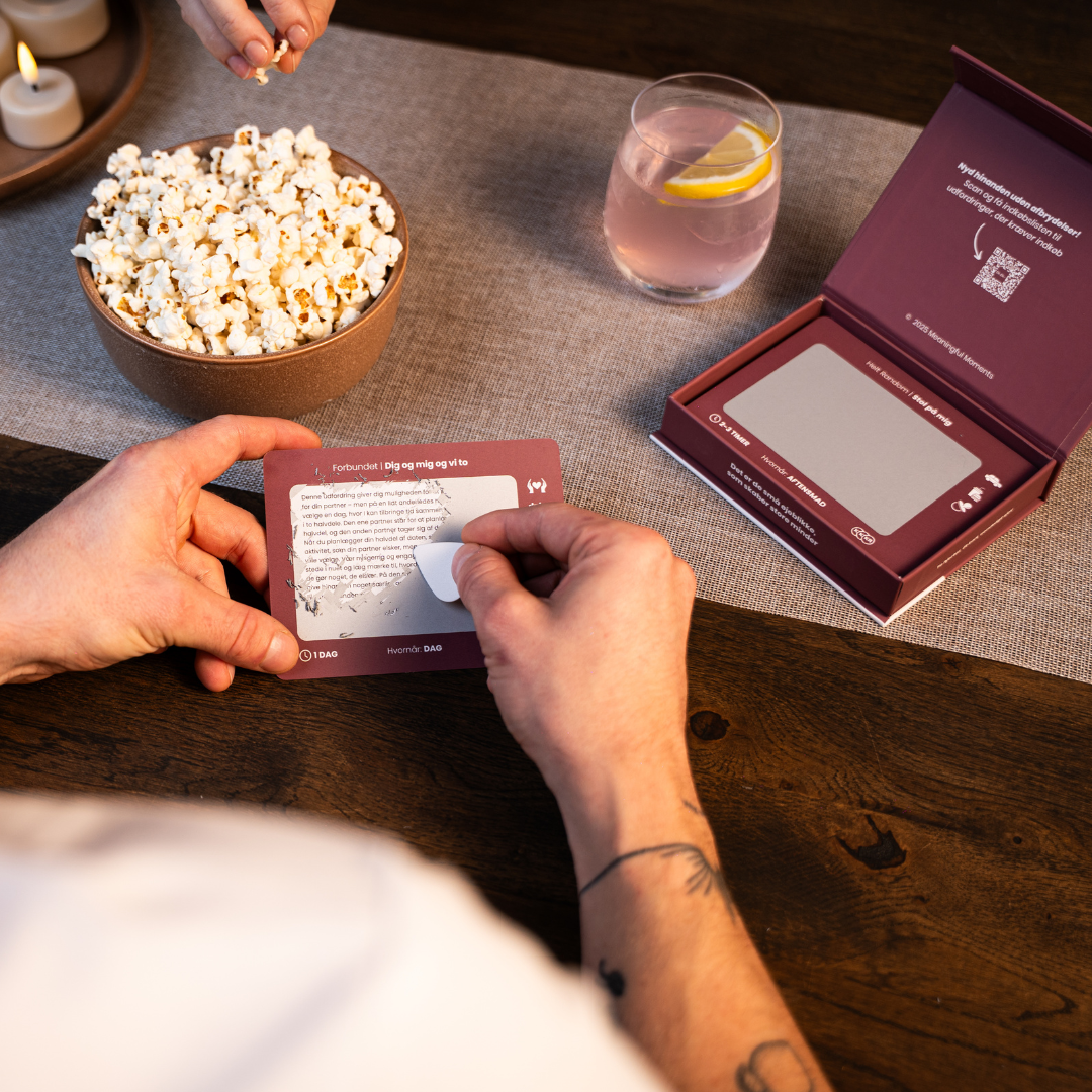 Skjulte Oplevelser™ – Date Nights gør jeres tid sammen til en leg fyldt med grin, romantik og uforglemmelige øjeblikke. Klar til at skrabe jer væk fra hverdagen?