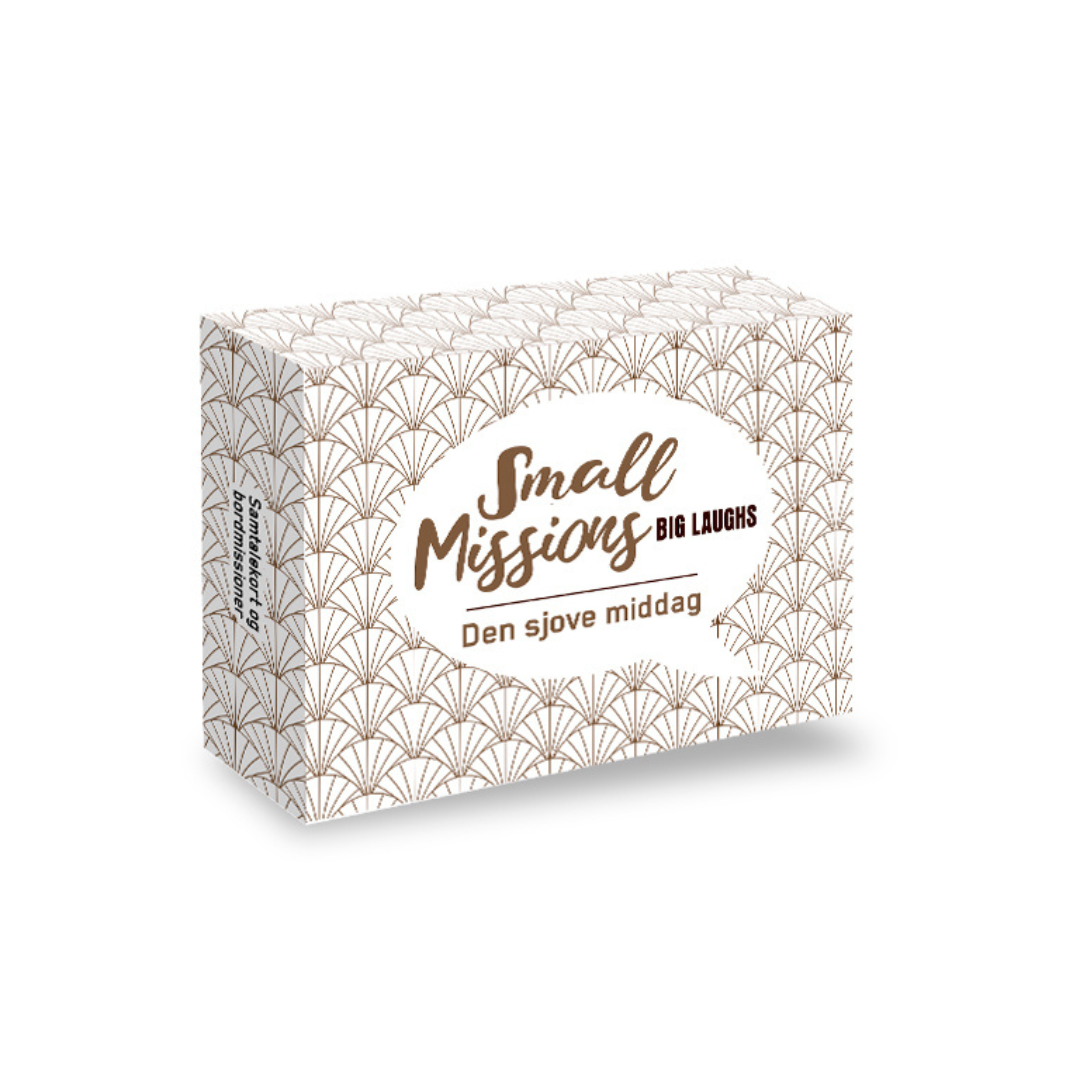Gør middagen uforglemmelig med denne æske fyldt med sjove og uventede udfordringer! Pakken indeholder 25 Dinner Missions-kort, som kan lægges under tallerkenerne, samt 48 Small Talk – Big Questions kort med “Hvem er det mest sandsynligt”-spørgsmål. Find ud af, hvem der mon først vil sige sit job op, blive stoppet af politiet, foreslå nøgenbadning eller tage på jorden rundt-eventyr. Alle kort er på både dansk og engelsk.